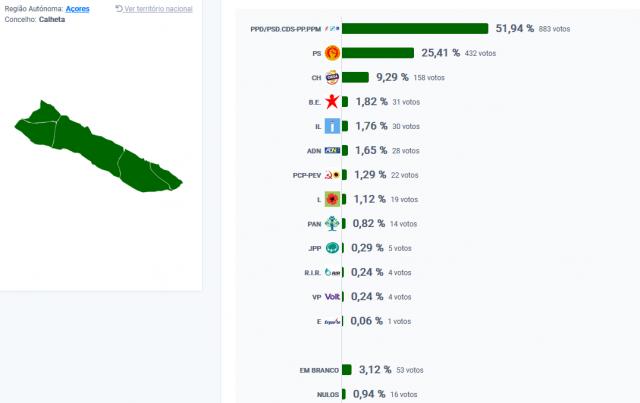 norte do país e nas ilhas, acima da média nacional da coligação nas