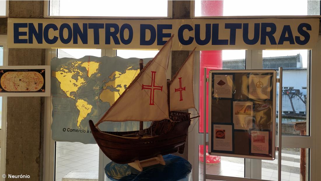 Nas disciplinas de História, Cidadania e Geografia foi abordado o tema da Interculturalidade, no contexto da Expansão Marítima. Assim sendo, os alunos debateram o encontro de cultuas e as alterações na vida quotidiana nos séculos XV e XVI. O império português, teve contatos com diferentes culturas – europeias, africanas, americanas e asiáticas – que permitiu a troca de experiências, hábitos e costumes. Estas culturas influenciaram mutuamente, levando à adoção, seleção e adaptação de elementos de uma cultura por outra, ou seja, a aculturação. A expansão também provocou grandes mudanças na vida quotidiana das populações. Plantas e animais passaram a ser produzidos, ou apenas consumidos, noutros continentes, levando a alterações nos hábitos alimentares, e a observação e o estudo de plantas e animais contribuíram para o alargamento do conhecimento do mundo. Deste modo, verificou-se a Globalização - processo de aprofundamento de relações económicas, sociais, culturais e políticas entre os povos espalhados pelo mundo. A globalização também promoveu as trocas culturais. Pode considerar-se que a expansão marítima, contribui para ligar povos de diferentes partes do globo. O projeto apresentou um programa diversificado: Exposição com cartazes de diversas culturas e etnias, da América, África e Ásia, conhecidas através da Expansão Marítima dos países ibéricos no século XVI; bancada com amostra de produtos oriundos das rotas intercontinentais do século XVI e respetivas fichas técnicas; plantas, roupas e elementos decorativos relativos às culturas apresentadas; mapas, que assinalavam  as rotas do comércio intercontinental no século XVI, e os países que atualmente mantiveram o português como língua oficial; cartaz intitulado: Palavras Importadas (Lista de palavras de Língua Portuguesa com influência dos outros povos); nesta exposição teve lugar de destaque uma réplica de  uma caravela, embarcação do século XV, construída em madeira, ostentando nas suas  velas triangulares o símbolo da Cruz de Cristo;  a Prova de chá Verde (Gorreana), chocolate quente e café (adultos) e degustação de frutas e doces confecionados com produtos destas rotas intercontinentais; a Dança do Dragão (cultura de Macau), encenada por alunos da turma do 8º D, foi uma exibição de relevância neste projeto; animação musical com ritmos das diferentes culturas e etnias apresentadas. Para além da exposição, realizou-se, no auditório da escola, uma Palestra intitulada: Todos diferentes, Todos Iguais, e atuação musical promovidas pela Associação dos Imigrantes nos Açores (AIPA), que esteve representada pela Dra. Maria Cristina Borges, Presidente da AIPA, natural de Angola, e pelo Dr. Leotero Viegas, Vice-Presidente da AIPA, natural de S. Tomé e Príncipe e contou com a presença da Sra. Ângela Fernandes, natural do Brasil e o Sr. Jaime Goth, músico e natural de Cabo Verde.  Os interlocutores proporcionaram um momento de interação com os alunos, de partilha de experiências de vida, onde abordaram as dificuldades que sentiram na sua integração como imigrantes nos Açores e do apoio que receberam junto da instituição da AIPA.