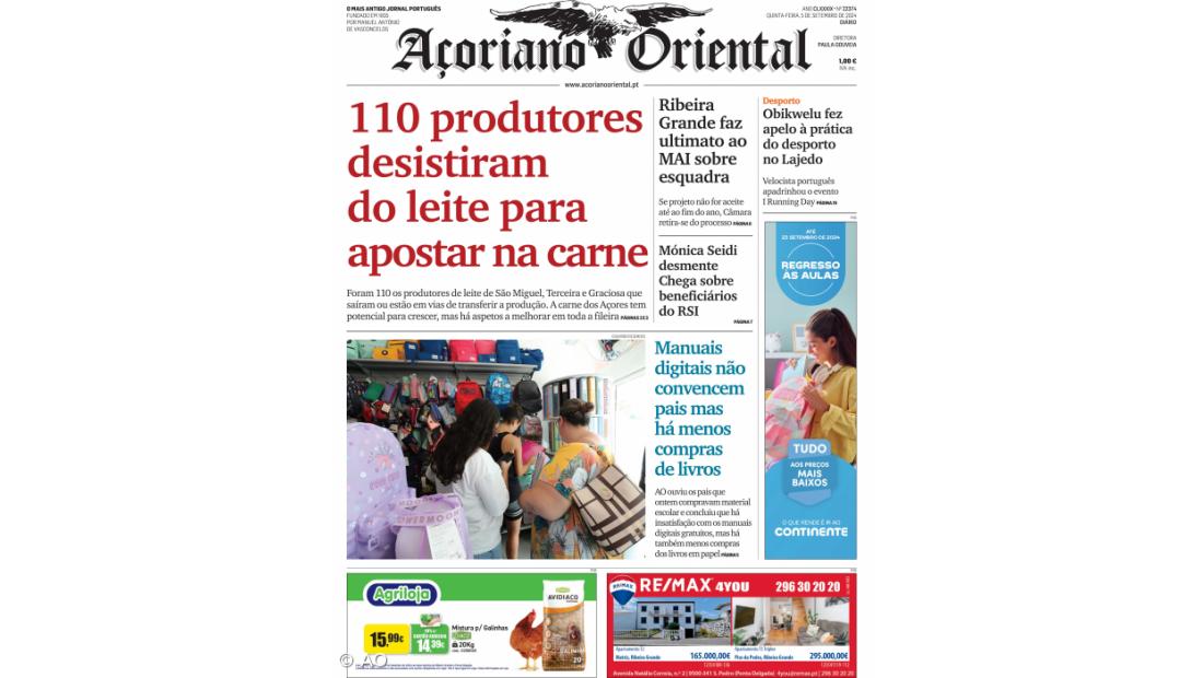 Nesta edição, noticia-se ainda o ultimato da Câmara da Ribeira Grande ao MAI sobre a esquadra, e que Mónica Seidi desmente o Chega sobre beneficiários do RSI. Uma reportagem sobre a compra de manuais e a aceitação dos manuais digitais gratuitos pelos encarregados de educação é outro dos motivos para ler o jornal de hoje.