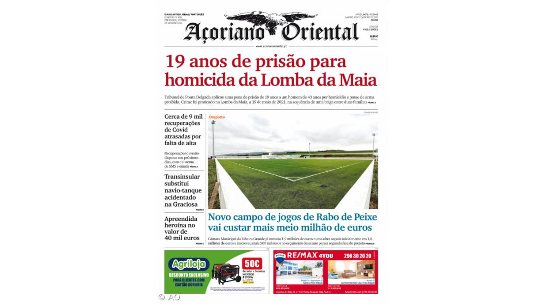 A condenação a 19 anos de prisão de um homem de 43 anos por homicídio e posse de arma proibida num crime que aconteceu na Lomba da Maia em maio de 2021, está em destaque no Açoriano Oriental de sábado, 12 de fevereiro de 2022.
