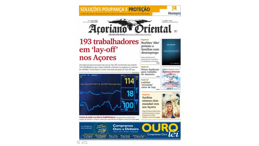 "193 trabalhadores em 'lay-off' nos Açores" é a manchete do Açoriano Oriental