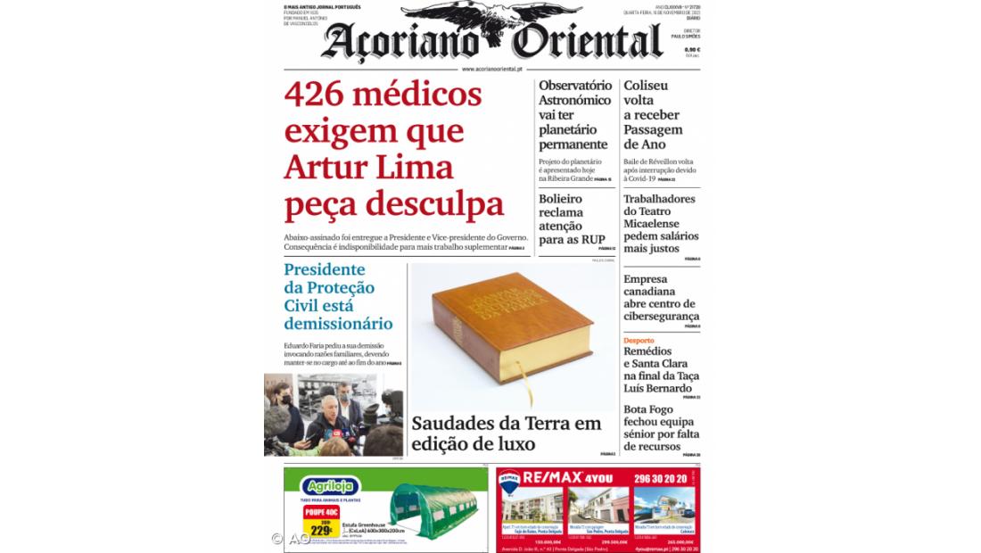 O regresso do Baile de Réveillon no Coliseu e a abertura de um centro de cibersegurança de empresa canadiana são outros dos temas no jornal desta quarta-feira, onde o Desporto adianta que Remédios e Santa Clara estão na final da Taça Luís Bernardo e que Bota Fogo fechou equipa sénior por falta de recursos.
