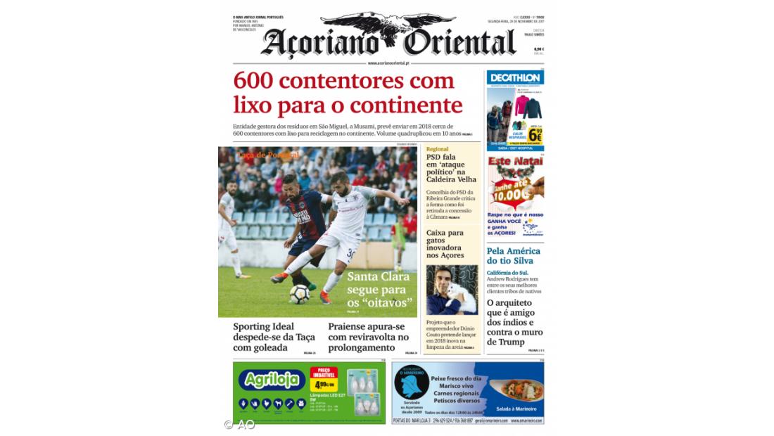 "PSD fala em 'ataque político' na Caldeira Velha" e "Caixa para gatos inovadora nos Açores" são outros destaques do jornal.