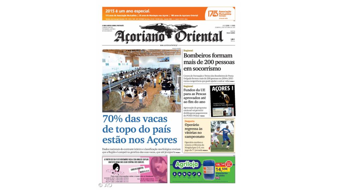 A explicação para os Açores serem neste momento os campeões da genética das suas vacas leiteiras a nível nacional está em destaque no Açoriano Oriental de domingo, 25 de outubro de 2015.