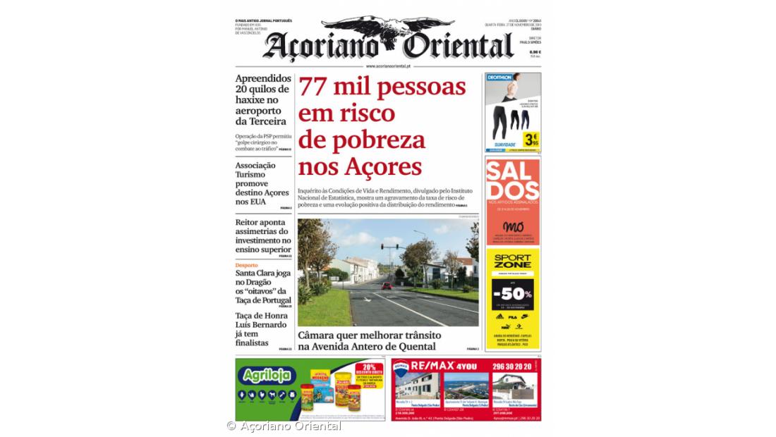 "77 mil pessoas em risco de pobreza nos Açores" é a manchete do Açoriano Oriental