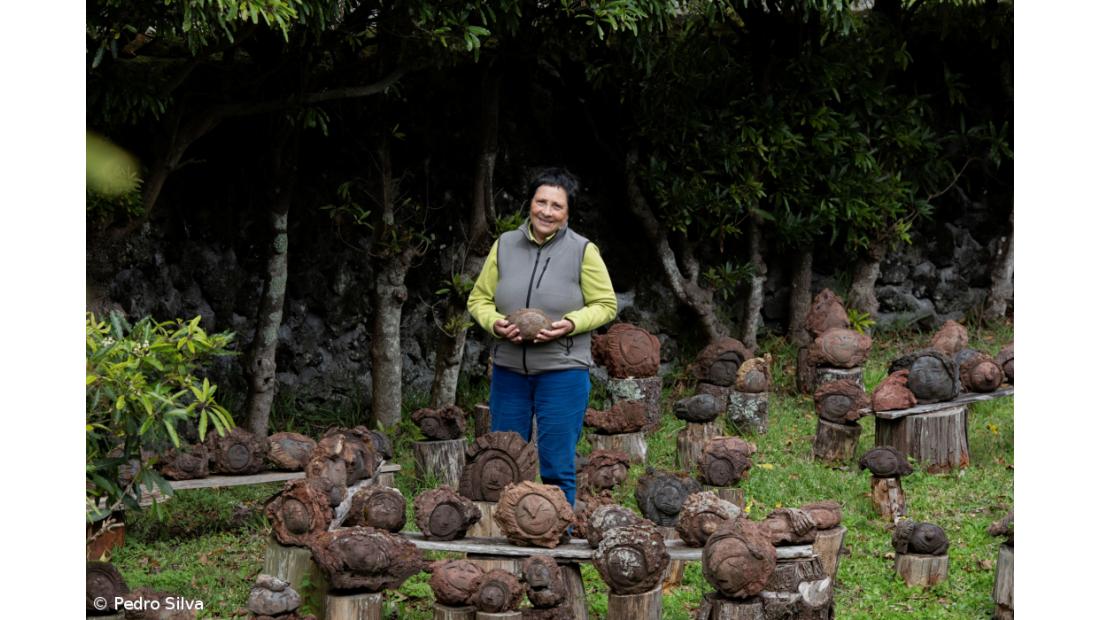 Helena Amaral nasceu em Vila Nova de Gaia e atualmente vive no Pico. Dedicou-se à pintura durante largos anos até que deixou de pintar, não sabe muito bem porquê. Depois, aventurou-se nas esculturas. Aliás, em vários locais da ilha do Pico pode-se apreciar a sua arte, os “Sorrisos de Pedra”, um projeto que nasceu há 10 anos pelas suas mãos, com colaboração da MiratecArts.
