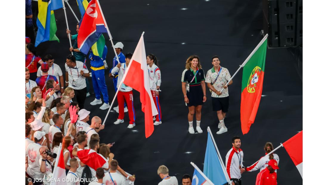 Em total comunhão, os porta-estandartes das várias nações, entre os quais os portugueses Iúri Leitão e Patrícia Sampaio, presentes entraram no estádio, numa derradeira homenagem aos heróis dos Jogos da XXXIII Olimpíada, passando junto a uma medalha de ouro gigante num palco, transformado, de forma simbólica, num planisfério.