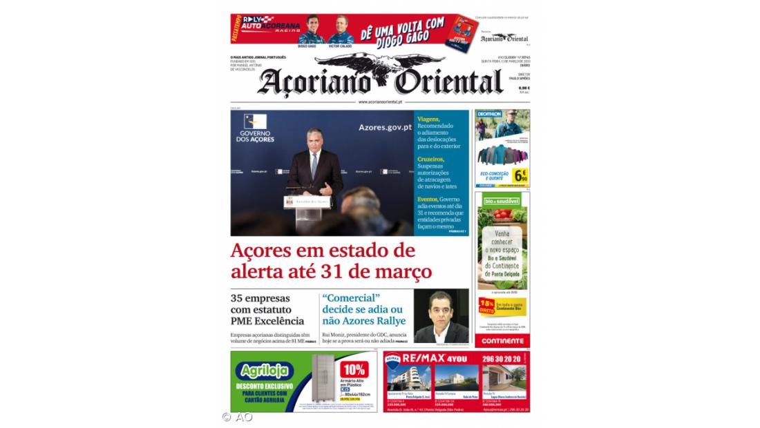 A distinção de 35 empresas com o estatuto PME Excelência e a decisão quanto à realização do Azores Rallye que será anunciada hoje são outros assuntos em destaque na primeira página desta quinta-feira.