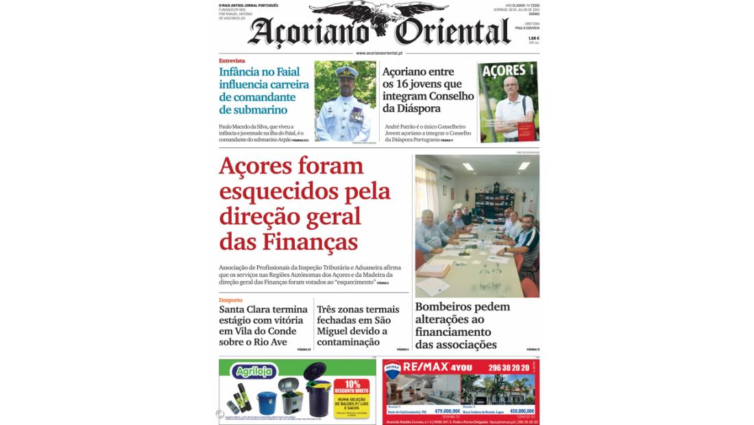 Ainda nesta edição: "Bombeiros pedem alterações ao financiamento das associações", "Infância no Faial influencia carreira de comandante de submarino", "Açoriano entre