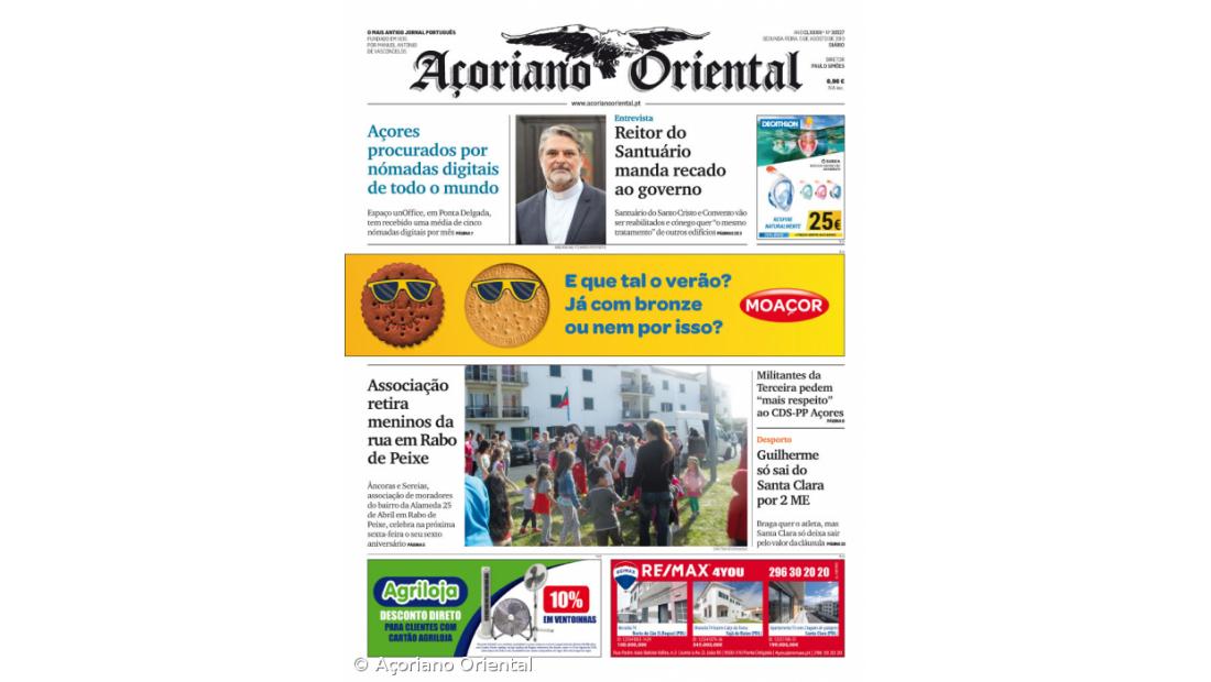 "Associação retira meninos da rua em Rabo de Peixe" é o título da manchete fotográfica. "Reitor do Santuário manda recado ao governo", "Militantes da Terceira pedem 'mais respeito' ao CDS-PP Açores" e "Guilherme só sai do Santa Clara por 2 ME" são os restantes títulos de capa do Açoriano Oriental.