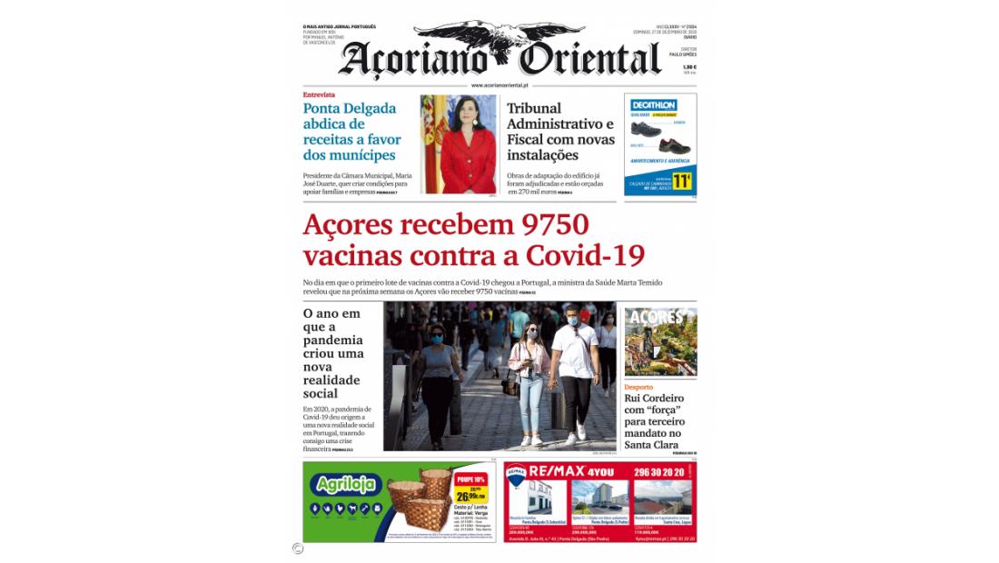 "Açores recebem 9750 vacinas contra a Covid-19" é a manchete da edição deste domingo do Açoriano Oriental.