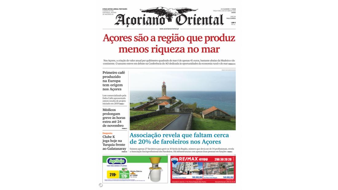 A edição de hoje do jornal também dá destaque a "Primeiro café produzido na Europa tem origem nos Açores" e "Médicos prolongam greve às horas extra até 24 de novembro".