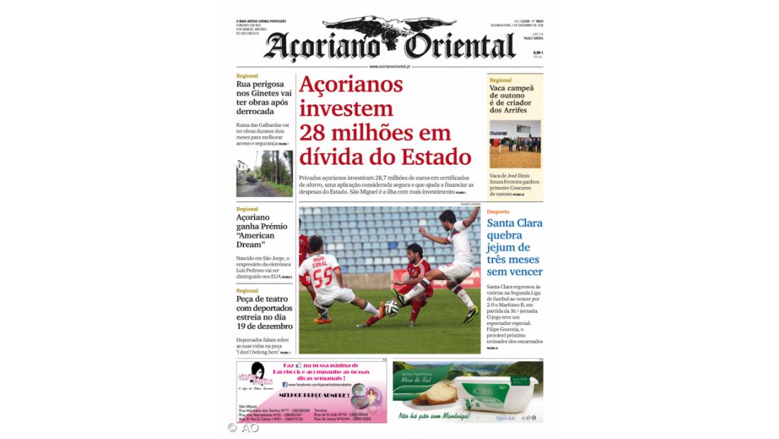 "Açorianos investem 28 milhões em dívida do Estado" é a manchete do Açoriano Oriental