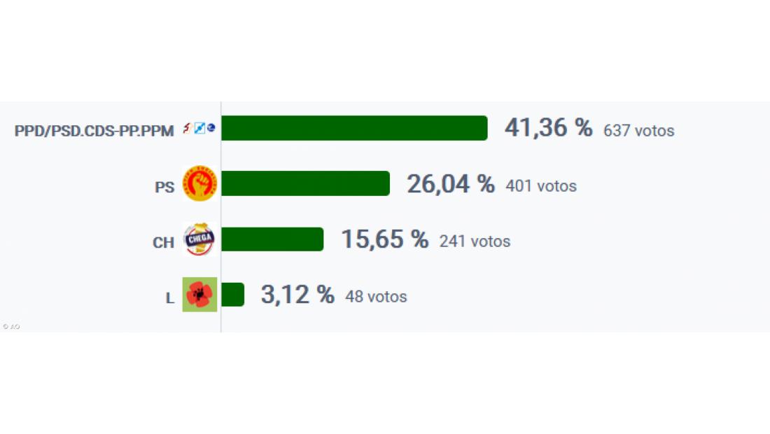 O resultado final da votação dá 41,36 % dos votos à AD; o PS obteve 26,04% e o Chega 15,65%;
