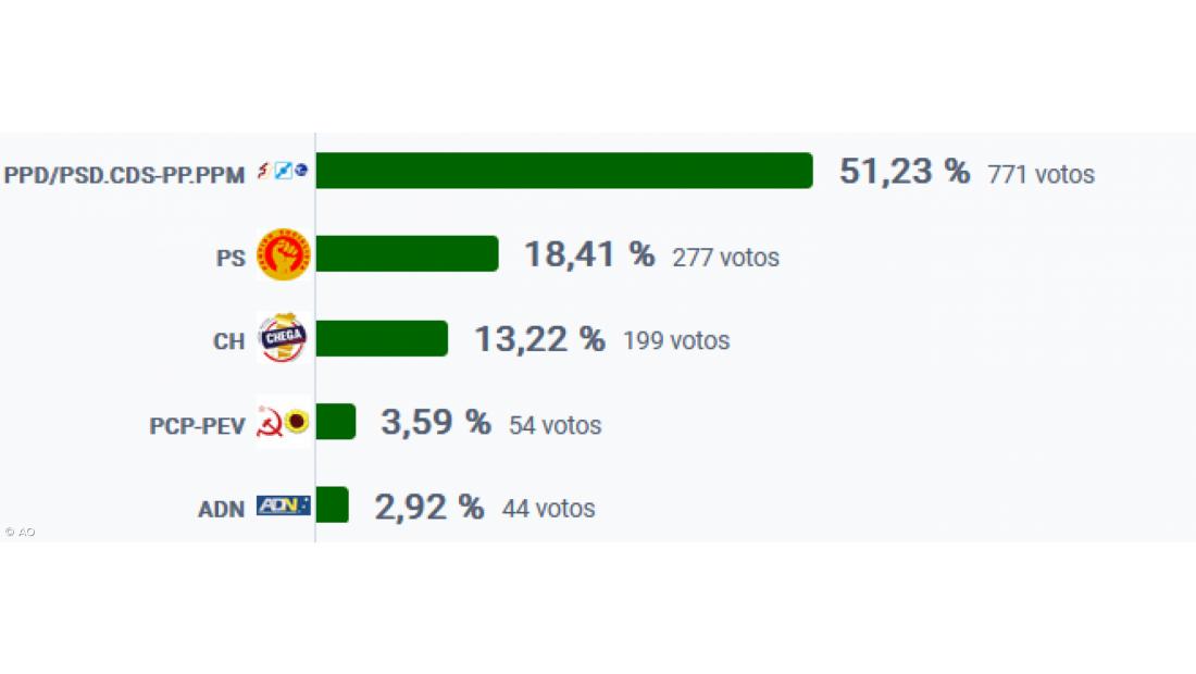 O resultado final da votação dá 51,23% dos votos para a AD; o PS obteve 18,41% e o Chega 13,22%;
