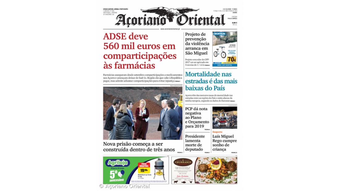 "ADSE deve 560 mil euros em comparticipações às farmácias" é a manchete do Açoriano Oriental