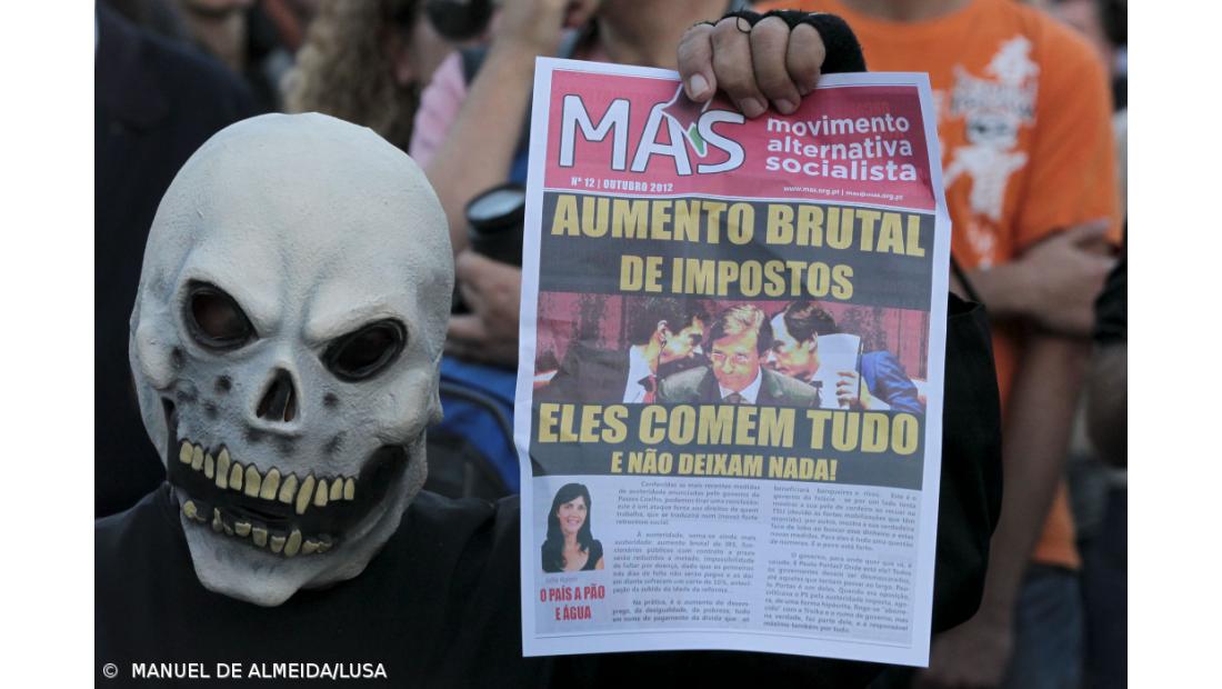 Começam a levantar-se algumas faixas de protesto contra o Governo, que já se têm visto em outras manifestações nas últimas semanas.