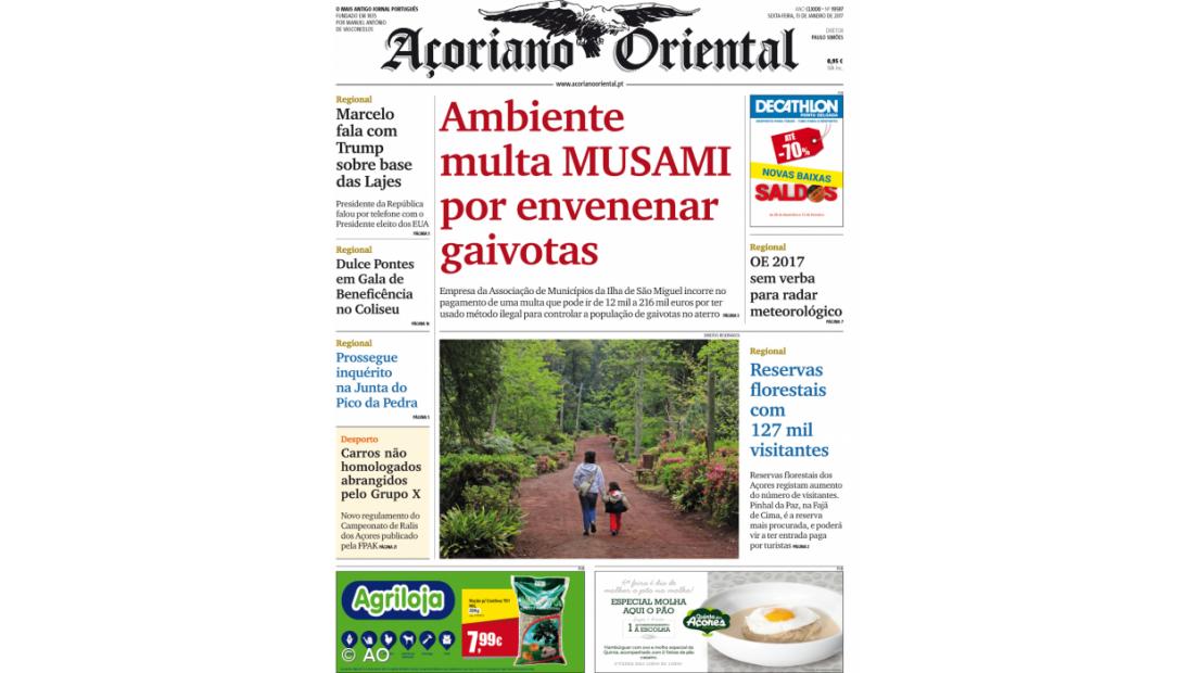 "OE 2017 sem verba para radar meteorológico", "Dulce Pontes em Gala de Beneficência no Coliseu" e "Marcelo fala com Trump sobre base das Lajes" são outros dos assuntos a ler no jornal de hoje, onde o Desporto dá conta das novas regras do Campeonato de Ralis dos Açores.