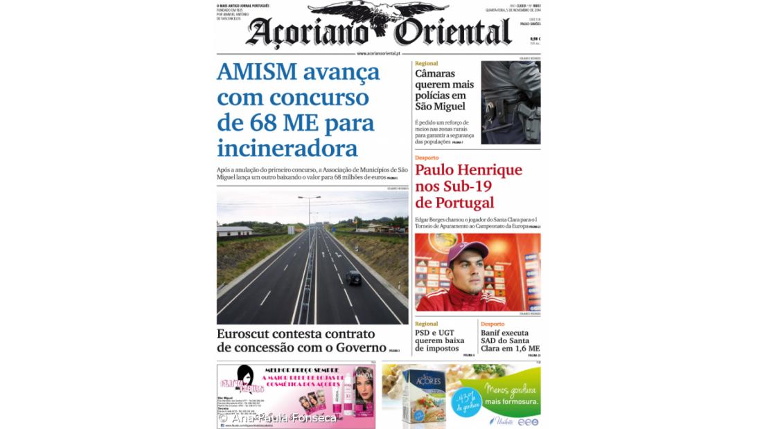 Euroscut contesta contrato de concessão com o Governo; Câmaras querem mais polícias em São Miguel, e PSD e UGT querem baixa de impostos são moutros títulos de capa.