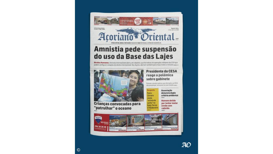 Ainda nesta edição: "Crianças convocadas para “patrulhar” o oceano", "Presidente do CESA reage a polémica sobre gabinete", "Associação denuncia duplo critério ambiental" e "Homem detido por tentar matar irmão com raticida".