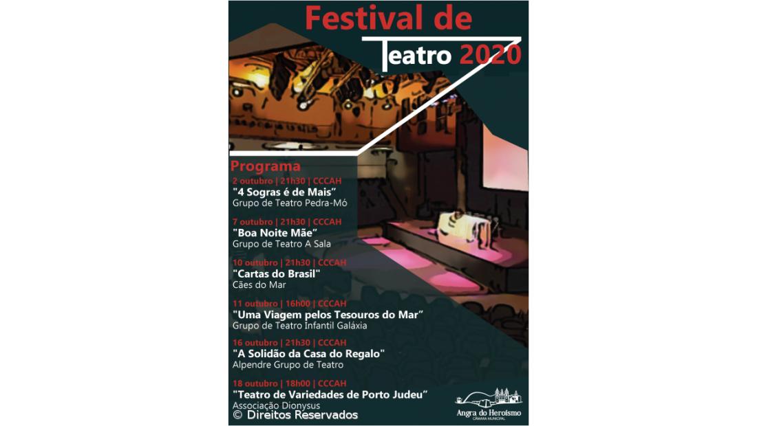 Desta forma, o Centro Cultural e de Congressos de Angra do Heroísmo, recebe no dia 2 de outubro, a peça “4 Sogras é Demais” do Pedra-Mó; a 7 de outubro o grupo A Sala que propõe a peça “Boa Noite Mãe”; a 10 de outubro é a vez dos Cães do Mar pisarem o palco com a peça “Cartas do Brasil”; a 11 de outubro “Uma Viagem pelos Tesouros do Mar” é o desafio feito pelo grupo de teatro infantil Galáxia aos mais novos.