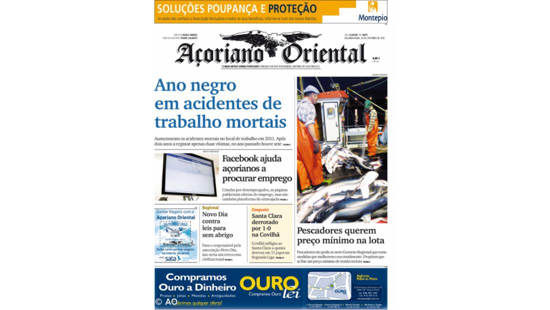 A capa da edição de hoje fica também marcada pelos títulos "Facebook ajuda açorianos a procurar emprego", "Novo Dia contra leis para sem abrigo" e "Santa Clara derrotado por 1-0 na Covilhã".