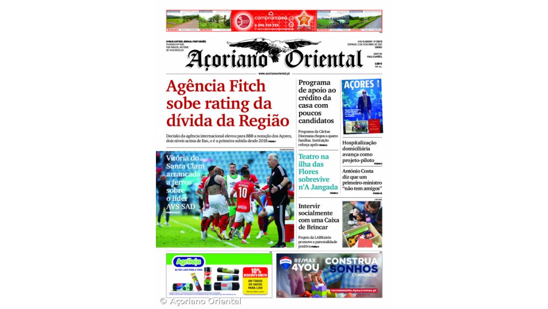 "Agência Fitch sobe rating da dívida da Região" é a manchete de hoje.