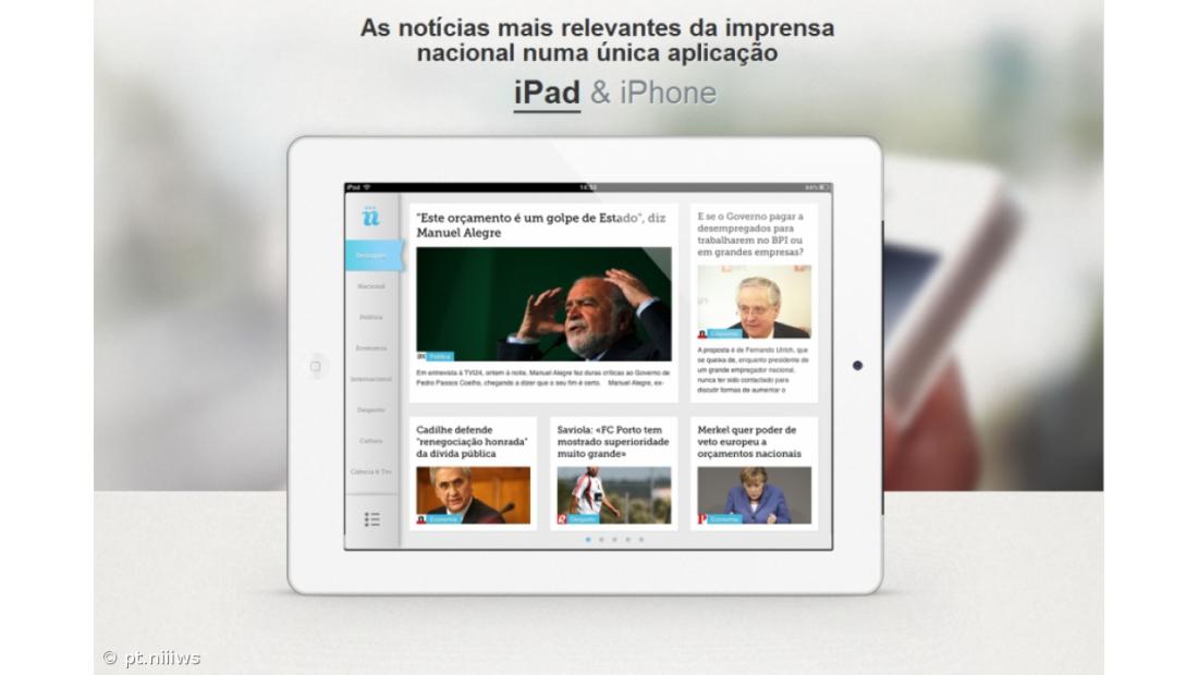 A aplicação Niiiws para iPad atingiu as 10.000 descargas em Portugal e, segundo João Martins, quer agora “aumentar o seu número de utilizadores oferecendo a mesma solução para iPhone, um dispositivo bem mais disseminado pelos portugueses ligados à internet”.