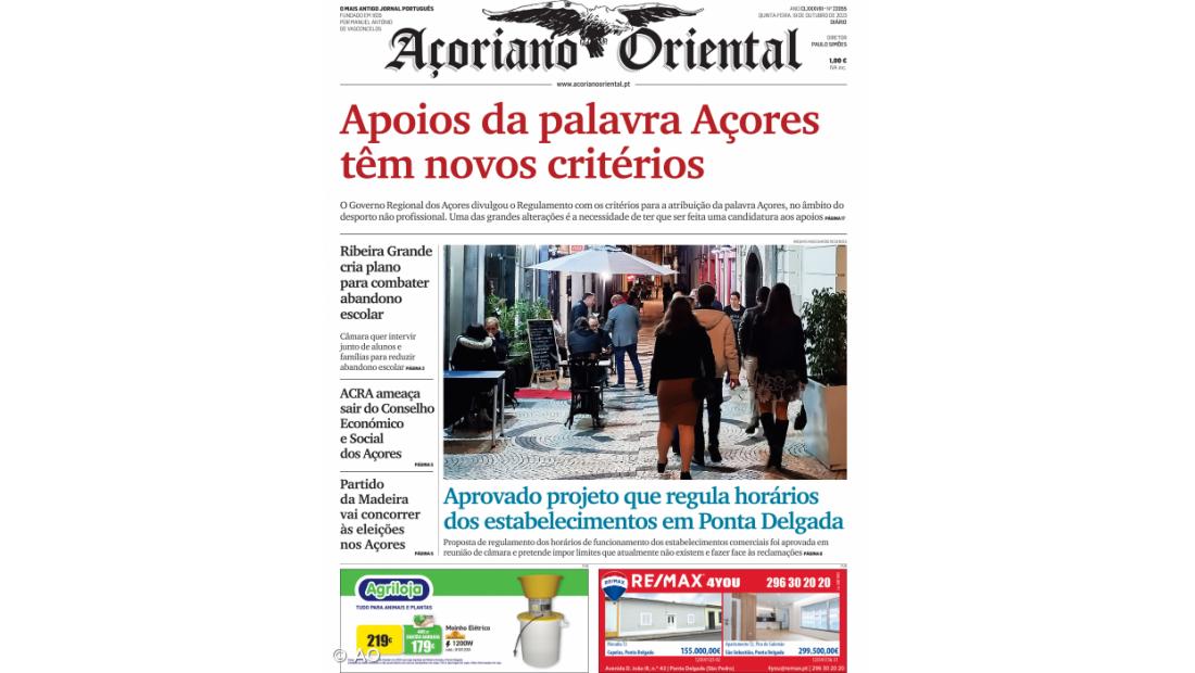 O destaque fotográfico do jornal vai para o também novo regulamento dos horários dos estabelecimentos comerciais em Ponta Delgada, que irá impor limites que atualmente não existem.
