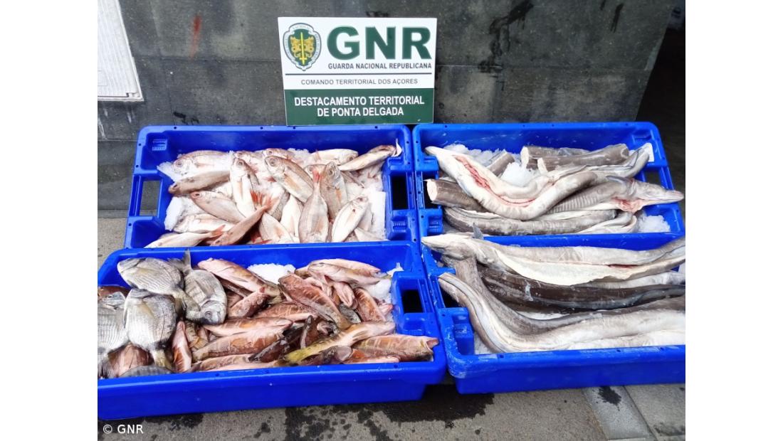 diverso pescado, sem o peso e as medidas mínimas para a sua pesca e