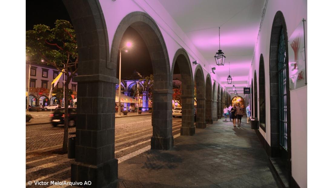 No caso de Ponta Delgada, as Arcadas do centro histórico ficarão iluminadas até 31 de outubro.