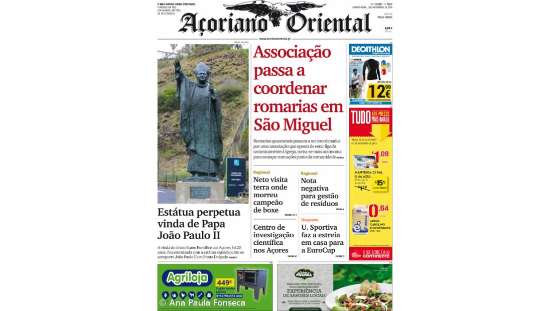 Estátua perpetua vinda de Papa João Paulo II, Neto visita terra onde morreu campeão de boxe no acidente aéreo no Pico da Vara, Nota negativa para gestão de resíduos, Centro de investigação científica nos Açores e União Sportiva faz estreia em casa para o EuroCup, são outros títulos de capa.