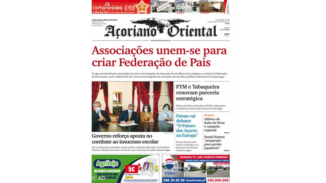 "FTM e Tabaqueira renovam parceria estratégica" e o Fórum que vai debater "O Futuro dos Açores na Europa", são outros destaques do jornal.