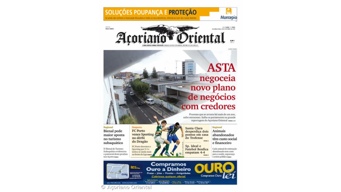 "ASTA negoceia novo plano de negócios com credores" é a manchete do Açoriano Oriental