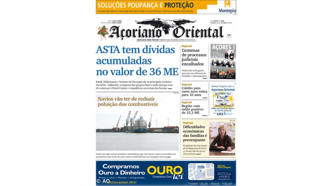 É a manchete da edição deste domingo do Açoriano Oriental