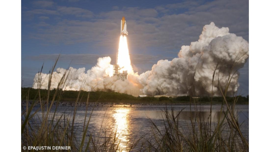 Com um peso superior a duas mil toneladas na descolagem devido ao sistema de propulsão, a Atlantis foi lançada a partir do Centro Espacial Kennedy, perto do Cabo Canaveral, no estado norte-americano da Florida às 14:28 (19:28 GMT), como previsto.