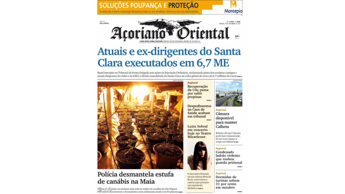 "Polícia desmantela estufa de canábis na Maia"; "Câmara disponível para manter Calheta" e "Recuperação da UAç passa por subir propinas" são outros destaques do jornal.