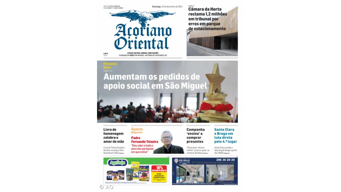 O aumento dos pedidos de apoio social em São Miguel, confirmado pelo testemunho de três instituições no terreno, está em destaque no Açoriano Oriental de domingo, 22 de dezembro de 2024.