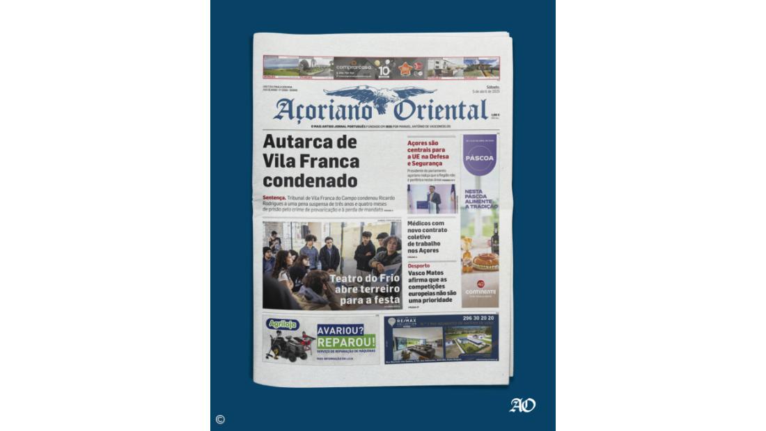 Ainda nesta edição: "Teatro do Frio abre terreiro para a festa", "Açores são centrais para a UE na Defesa e Segurança" e "Médicos com novo contrato coletivo de trabalho nos Açores".