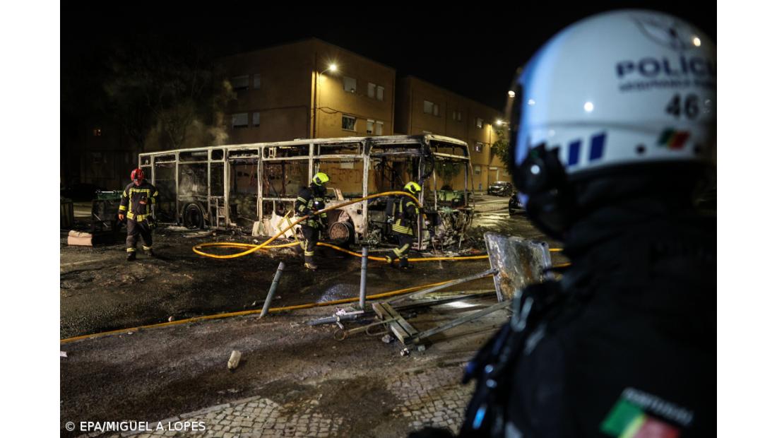 No bairro da Portela, Carnaxide, Oeiras, foi incendiado na terça-feira à noite um autocarro, além de vários caixotes do lixo e uma viatura ligeira.