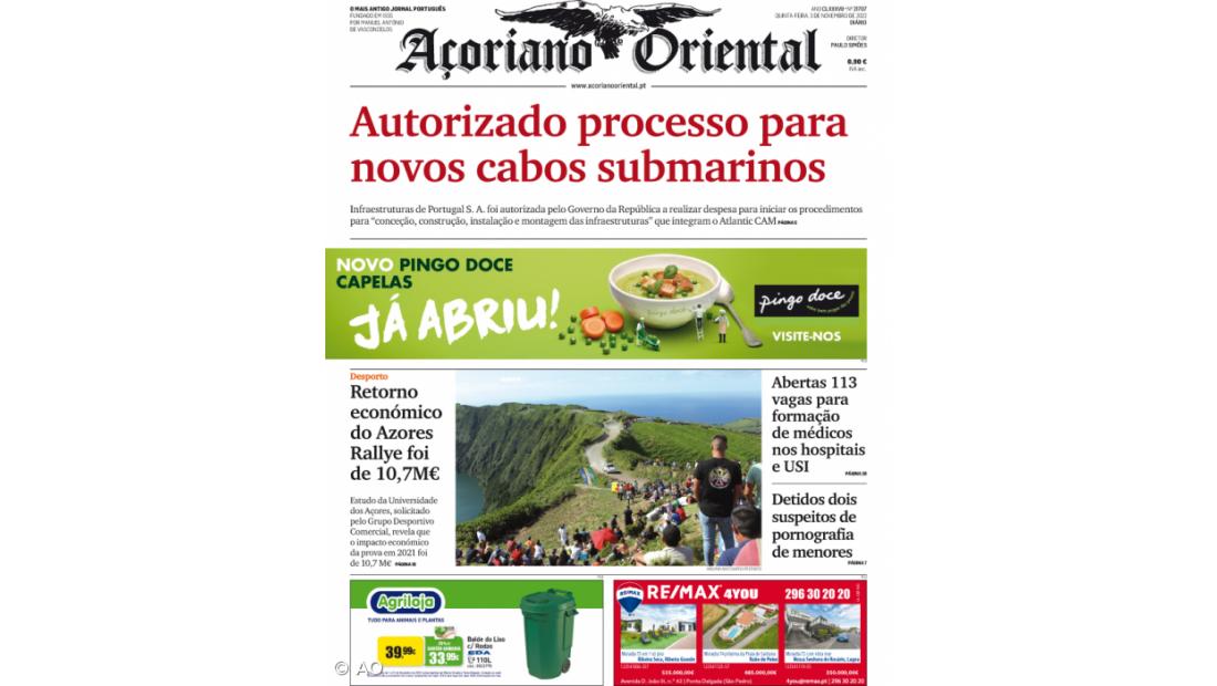 Açoriano Oriental destaca autorização dada pelo Governo da República para que Infraestruturas de Portugal S.A. dê início aos procedimentos para conceção, construção e instalação e montagem de infraestruturas do Atlantic CAM