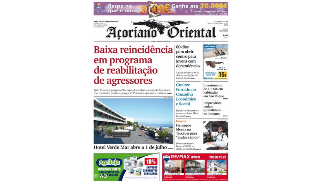 "Hotel Verde Mar abre a 1 de julho", é o título do destaque fotográfico do Açoriano Oriental.