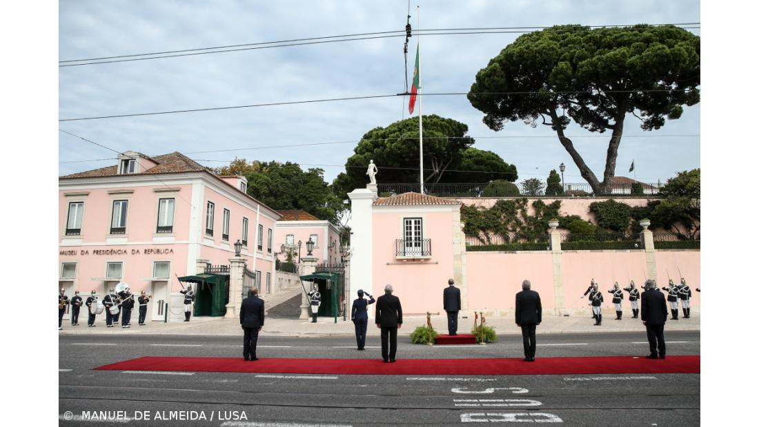 O Presidente da República, Marcelo Rebelo de Sousa, chegou à Praça Afonso de Albuquerque, em frente à entrada do Palácio de Belém, em Lisboa, onde o trânsito foi temporariamente cortado, dando início à cerimónia.