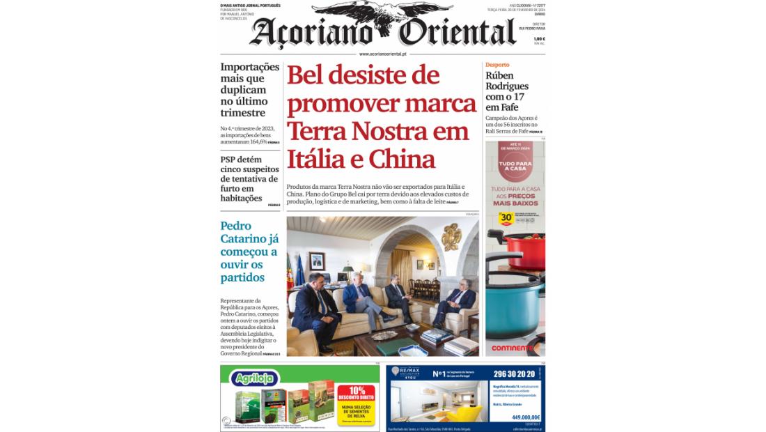 "Bel desiste de promover marca Terra Nostra em Itália e China" é a manchete da edição desta terça-feira nos Açoriano Oriental.