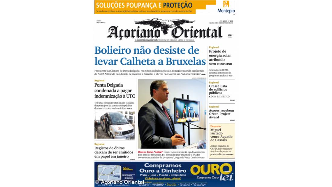 O matutino chama ainda à primeira página que cresce lista de edifícios públicos com amianto; que os Açores recebem Green project Award e no Desporto o destaque vai para Miguel Furtado, antigo nadador do CNPDL foi o vencedor do Aquatlo de Cascais