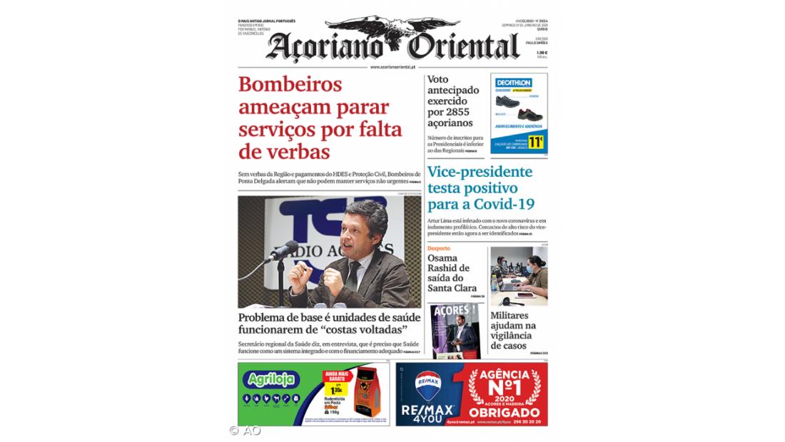 A notícia de que o vice-presidente do Governo Regional testou positivo para a Covid-19 é outro dos destaques do jornal de domingo, onde também se dá conta do número de inscritos para o voto antecipado nas Presidenciais.
