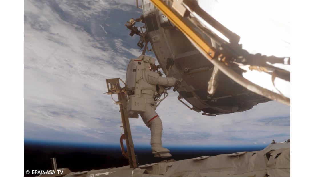 Para além do trabalho dos dois astronautas, os técnicos da missão vão inspeccionar a junta rotatória dos painéis solares da Estação Espacial Internacional que orbita a 27.700 quilómetros por hora e a cerca de 380 quilómetros da Terra.