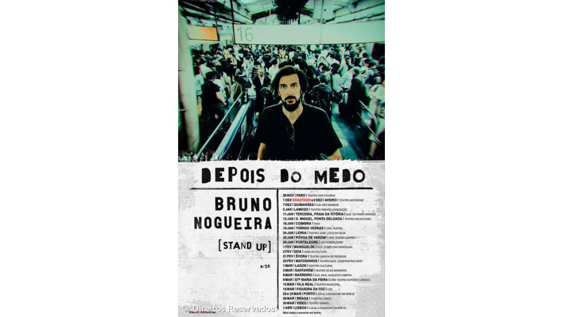 O ator Bruno Nogueira regressa ao 'stand-up comedy', e à escrita de sinopses, com o espetáculo “Depois do Medo”, que se estreia a 29 de novembro, no Teatro das Figuras, em Faro. Bruno Nogueira vai estar na ilha Terceira e em São Miguel, no mês de janeiro de 2019.