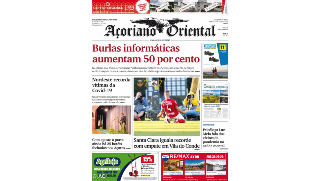 "Nordeste recorda vítimas da Covid-19" e "Com agosto à porta ainda há 25 hotéis fechados nos Açores" são outros destaques do jornal.