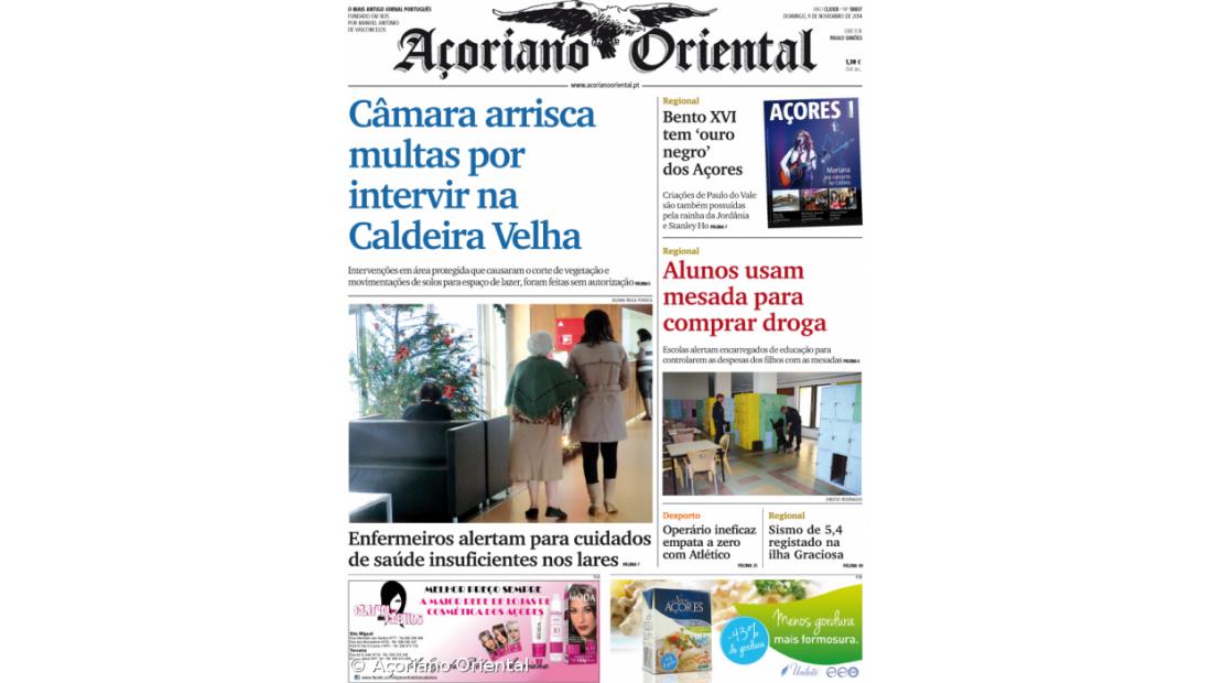 A manchete do Açoriano Oriental noticia que as intervenções em área protegida que causaram o corte de vegetação e movimentações de solos para espaço de lazer na Caldeira Velha, foram feitas sem a autorização do Governo Regional.